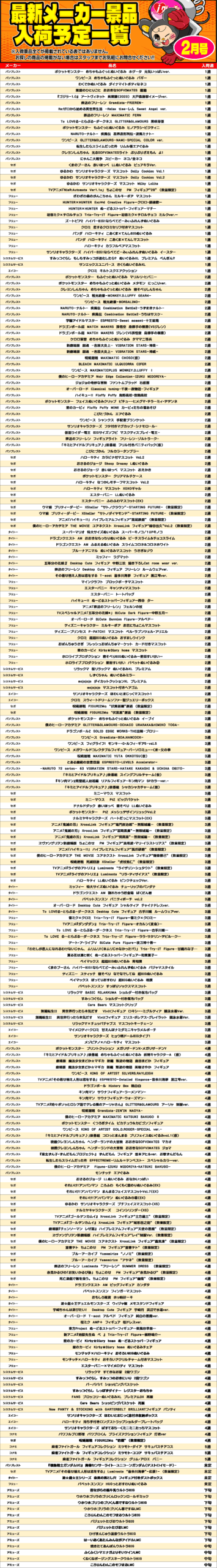 ★最新メーカー景品入荷表★