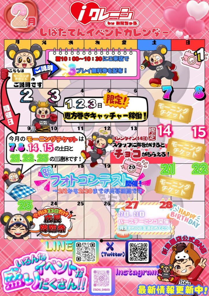 2月イベントカレンダー🗓️完成しました! 今月もたくさんのご来店お待ちし…