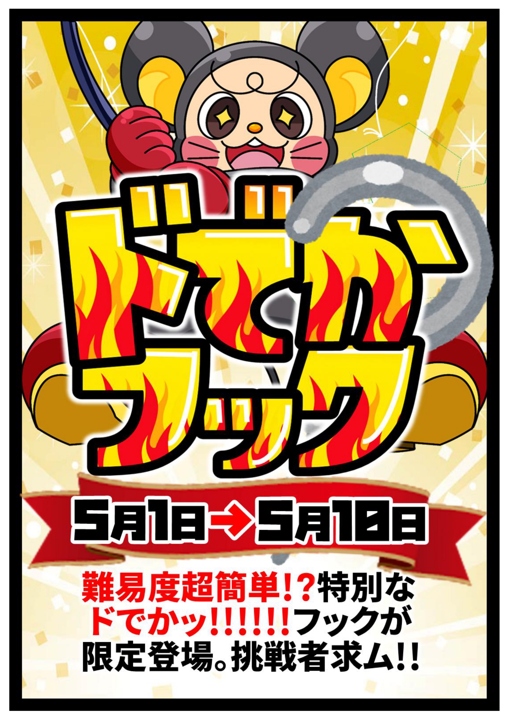 ⚠️5/1から特別ブースが出現⚠️ドデカいフックが限定出現⚠️ イベント 2026年4月26日 ⚠️5/1から特別ブースが出現⚠️ ドデカいフックが限定出現⚠️ゴールデンウィーク限定大奉仕台なので期間限定でお願いします🫶 たくさんの常連様含め、お子様から初心者まで楽しめるように本日深夜〜もっともっと取れるように台の移動や設定の見直しを行いますのでぜひご期待ください😎㊗️ 取れすぎたらごめんなさい🙏‼︎沢山のご来店をお待ちしております🥰 **************** こちら↓もぜひチェックしてみてくださいね♪(*´▽`*) ・最新のイベント情報はこちら ・最新の買取情報はこちら